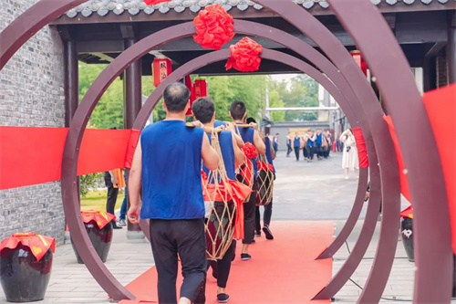 “一聲鼓響,風調(diào)雨順!二聲鼓響,美酒天成!三聲鼓響,萬窖齊開!吉時已到,開窖門!”中國釀酒大師、洋河股份總裁鐘雨,著名主持人、朗誦藝術家、中國文聯(lián)“終身成就電視藝術家” 陳鐸,中國釀酒大師、洋河股份總工程師周新虎和中央電視臺詩詞大會總顧問,清華大學、南京師范大學教授鐘振振敲響吉祥鼓,2023年洋河·雙溝頭排酒開窖儀式正式開始。
